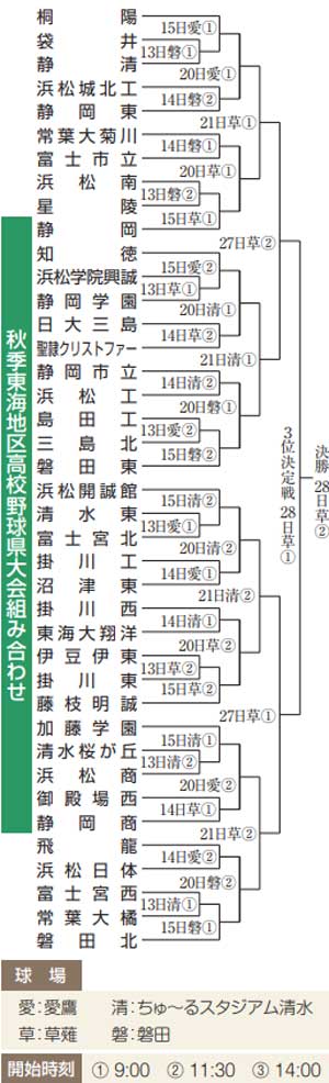 秋季東海地区高校野球県大会組み合わせの組み合わせが決まりました!